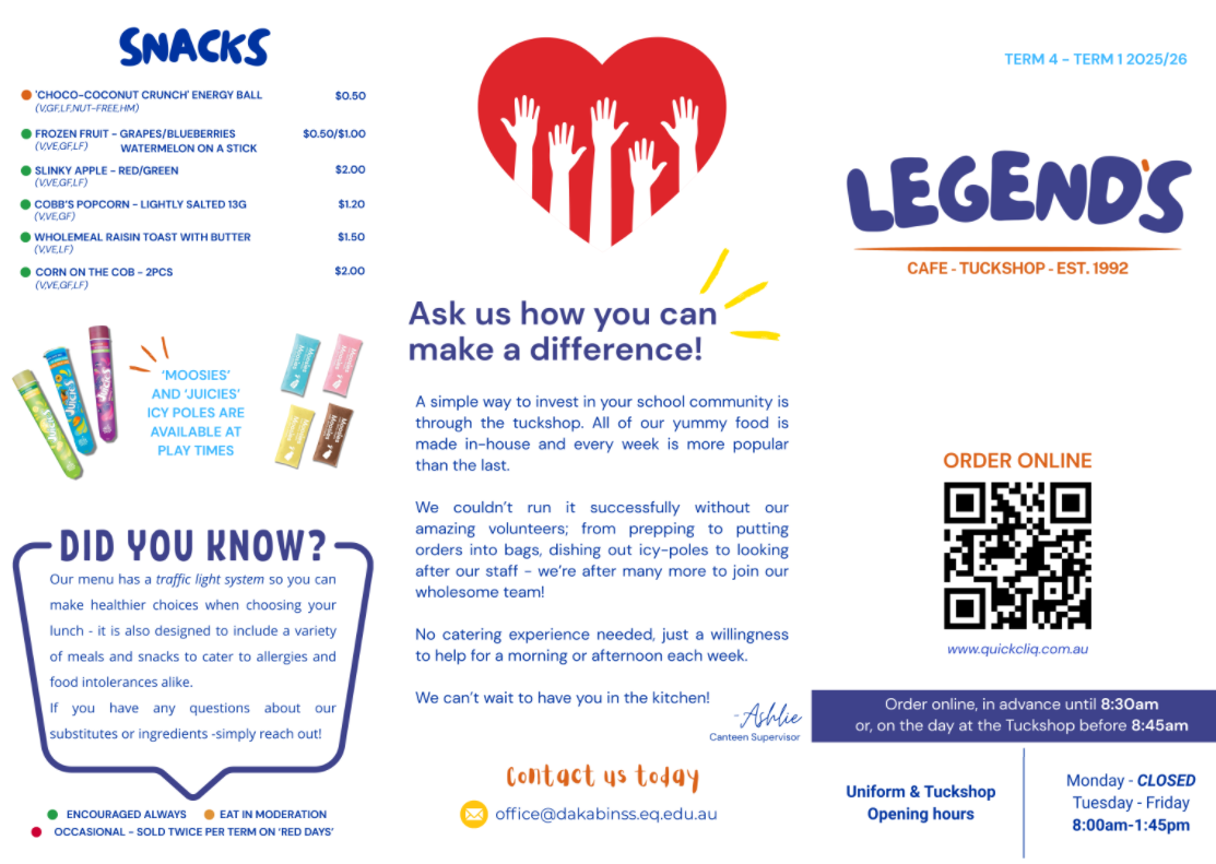 Parental help are always welcome. Please see our tuckshop convenor Ashlie if you are able to volunteer.