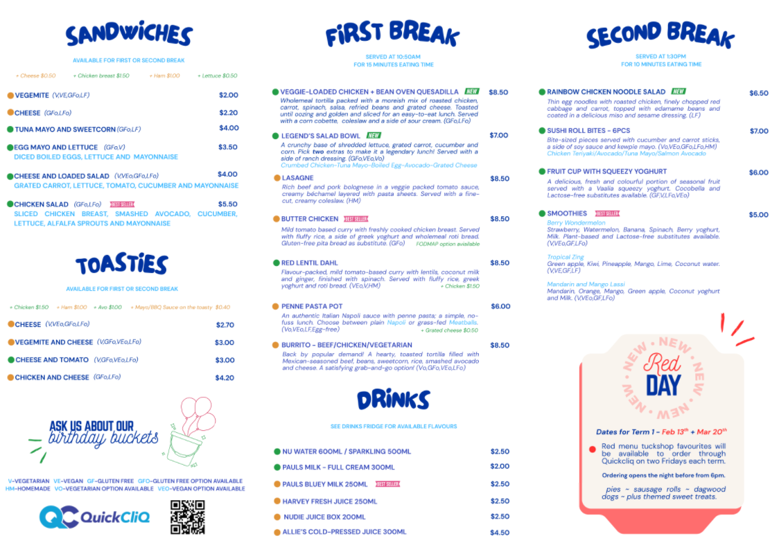 Parents are welcome to come and order at the tuckshop (Eftpos available). Inperson orders are placed in the tuckshop by 8.45am.